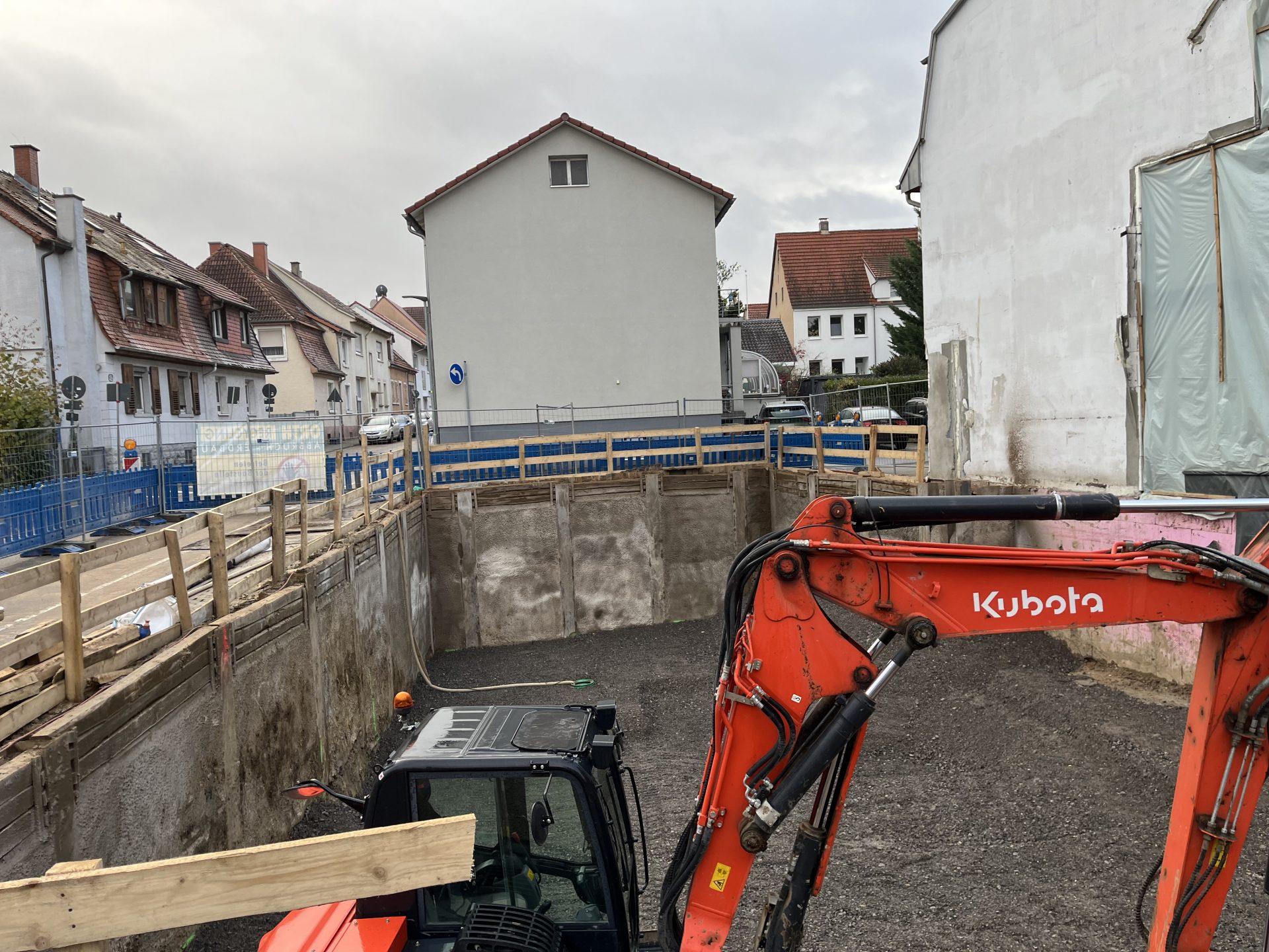 Auf dem innerstädtischen Eckgrundstück Schwetzinger Straße / Mühlgasse entsteht ein fünfgeschossiges Mehrfamilienwohnhaus mit 12 kleineren Wohnungen zwischen 33 m² und 60 m² Wohnfläche.