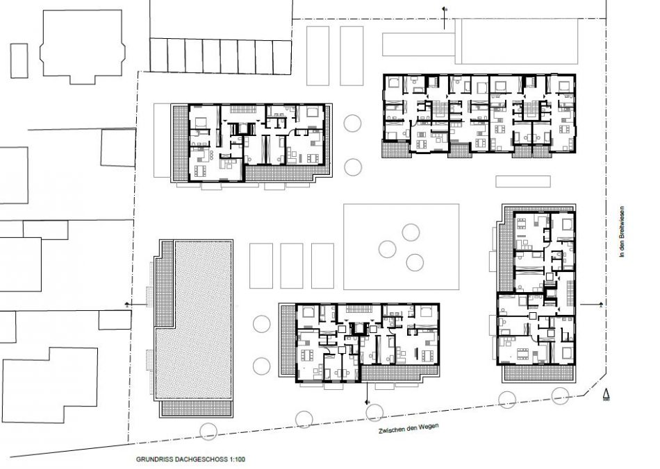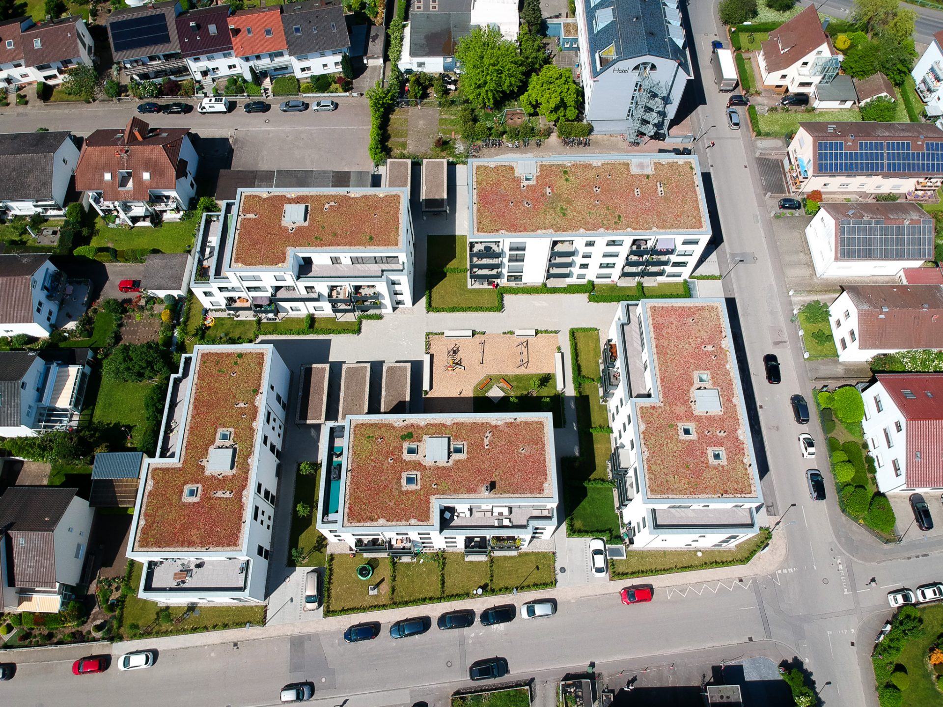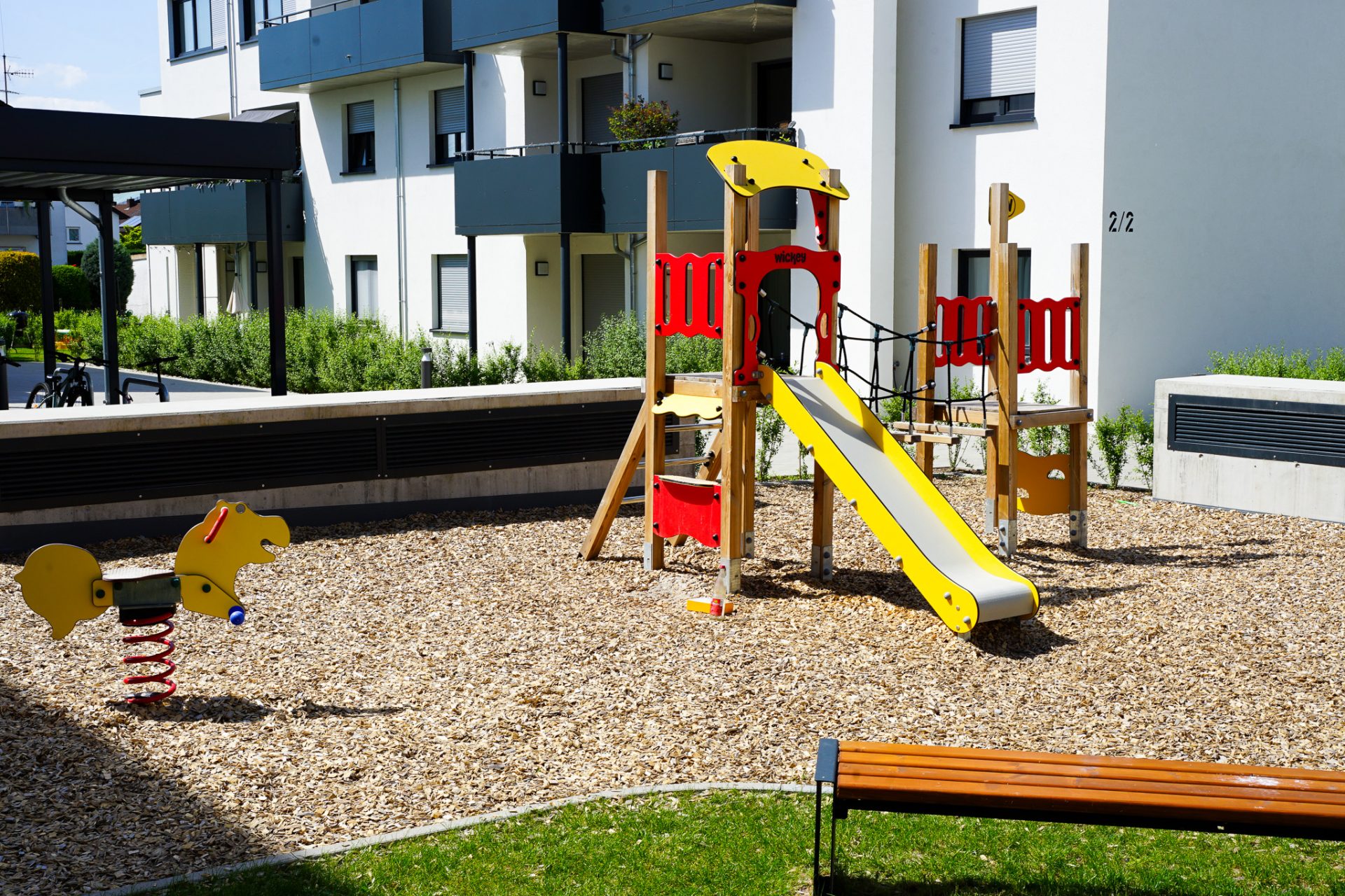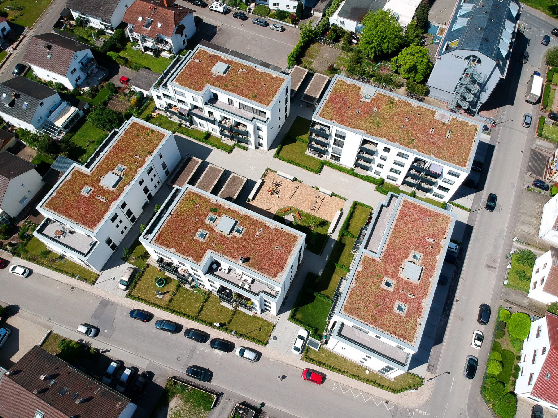 Fünf Mehrfamilienhäuser, geprägt von einer ansprechenden und zugleich wirtschaftlichen Architektur, formen ein neues Wohnquartier nur einen Steinwurf vom Wieslocher Zentrum entfernt. Im Innenbereich des Quartiers wird ein großzügiger, vollständig autofreier Spielplatz realisiert, der eine hohe Aufenthaltsqualität für alle Bewohner sicherstellt.